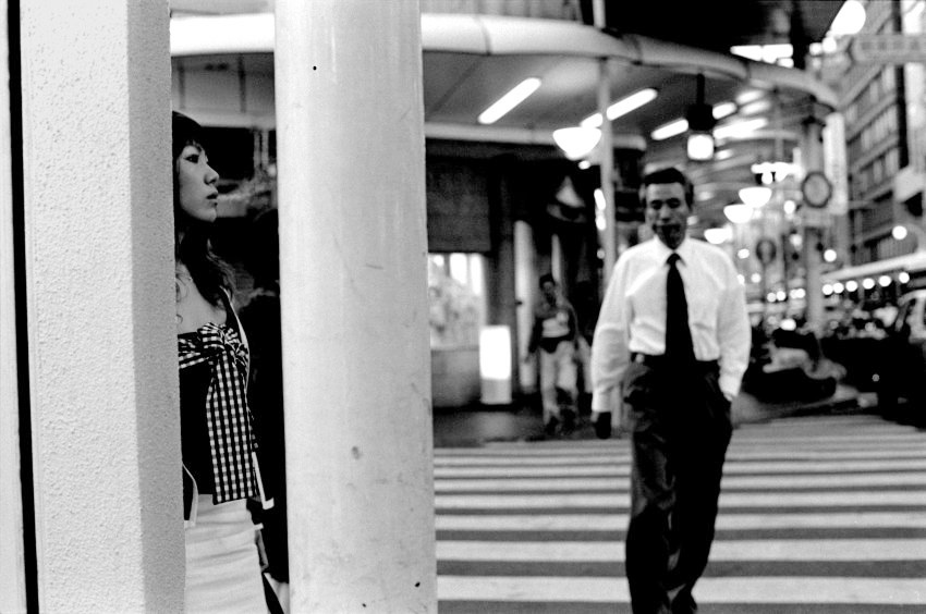 Ce travail réalisé au Japon, s’inscrit dans une série commencée à New York puis en Europe. Elle montre l’homme dans la ville face à son questionnement intérieur, surpris dans ses moments d’errance, ses instants suspendus où il échappe à l’univers urbain. En Occident ou en Asie, la cité dessine les mêmes lignes de verre, de béton et d’acier où l’homme se cherche et se perd. Au Japon, dans la ville affairée qui crépite et clignote de mille enseignes et signaux, l’homme s’isole en lui-même mieux qu’ailleurs. N’importe où, n’importe quand, il s’échappe, prend du large comme pour répondre à une impérieuse nécessité, il s’invente des silences au cœur même du tumulte c’est peut-être à ce prix qu’il reste en équilibre (Sophie Malexis).