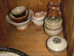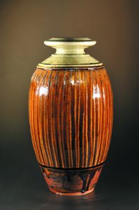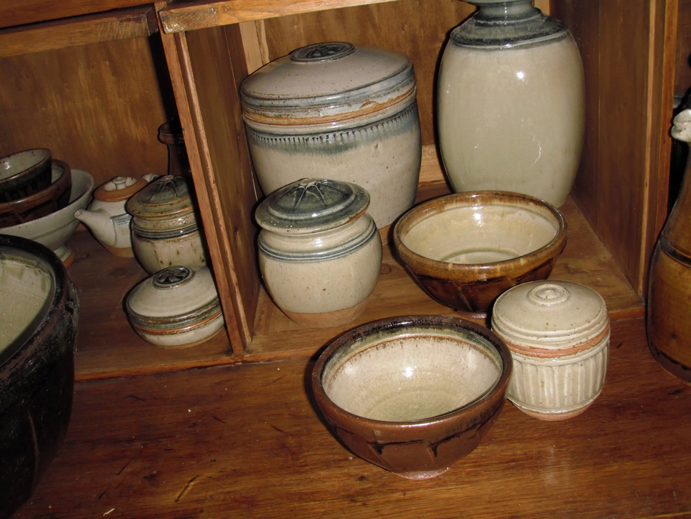 Born 1936, became interested in pottery when he was at Bryanston School and learnt under the guidance of Donald Potter, himself a student of Eric Gill. When his conventional education was finished he spent a year studying as a potter at the Leach Pottery in St Ives, Cornwall. It was here that he met his future wife, Dinah Dunn, and struck up a friendship with Atsuya, son of Shoji Hamada. In 1959 Richard and Dinah set up their own pottery at Durweston, Dorset. Dinah was to give up ceramics to look after their large family. Richard built a double-chamber climbing kiln and started developing his range of stoneware vessels. In 1966 he built a larger four-chambered kiln in nearby premises. From here he extended his range, making some very large pieces. His range of shapes and glazes are kept to a minimum – a legacy of his experience of the Leach Pottery – but he is regarded as one of the finest living potters. Although he does not mark his work a few of his early works bear his initials RB.
