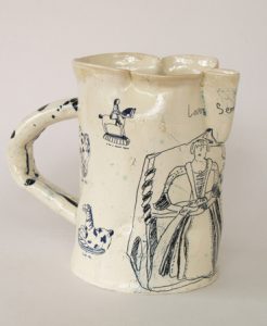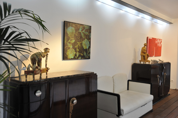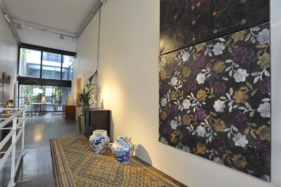 A la vue de la collection de carreaux français du Moyen Age, 18ème et 19ème siècle de Benoit Faÿ (plus de 1 500 carreaux proposés à la vente), les œuvres de deux artistes contemporains -l’anglais Philip Eglin et le français daniel bambagioni- se sont imposées, en écho à ce vaste répertoire iconographique .Leur goût commun pour une réinterprétation des décors traditionnels que la production industrielle a balayés, révèle à quel point la pensée décorative artisanale, dans ses formes comme dans ses images est toujours source d’inspiration. Le sculpteur céramiste Philip Eglin témoigne de ses positions éthiques et politiques en réaction à l’actualité, dans un traitement formel inspiré de l’époque médiévale. Le peintre daniel bambagioni questionne la surface picturale par la répétition, la répartition, l’apparition ou la dissolution des motifs qui évoquent les modes d’assemblage des papiers peints, des carreaux céramiques.