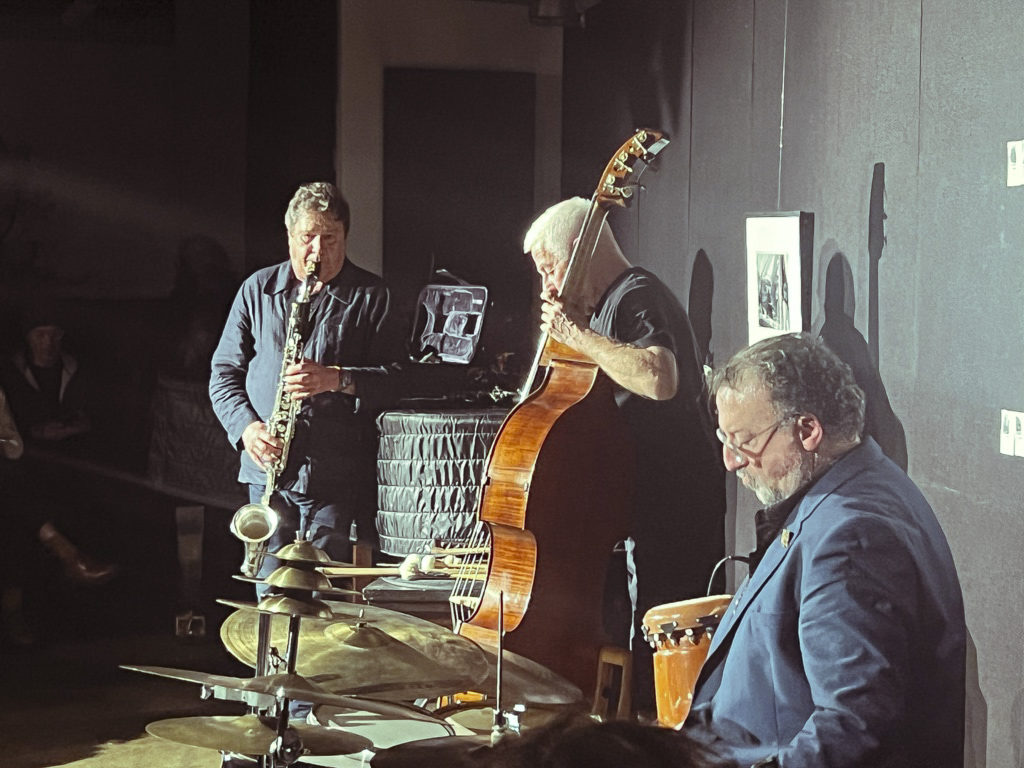 De g. à d. : Louis Sclavis, Barry Guy, Ramon Lopez